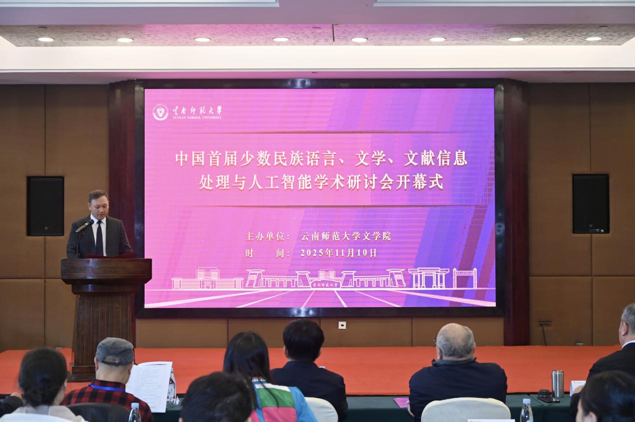11月10日,中国首届少数民族语言、文学、文献信息处理与人工智能学术研讨会在我校国际交流中心召开。中国社会科学院学部委员、文哲学部主任朝戈金,中央民族大学中国语言文学学部副主任钟进文出席会议,四川大学、西南民族大学、大连民族大学、昆明理工大学、云南民族大学等省内外高校的专家学者齐聚云南师范大学,共话传统语言文学与人工智能融合发展的新路径。