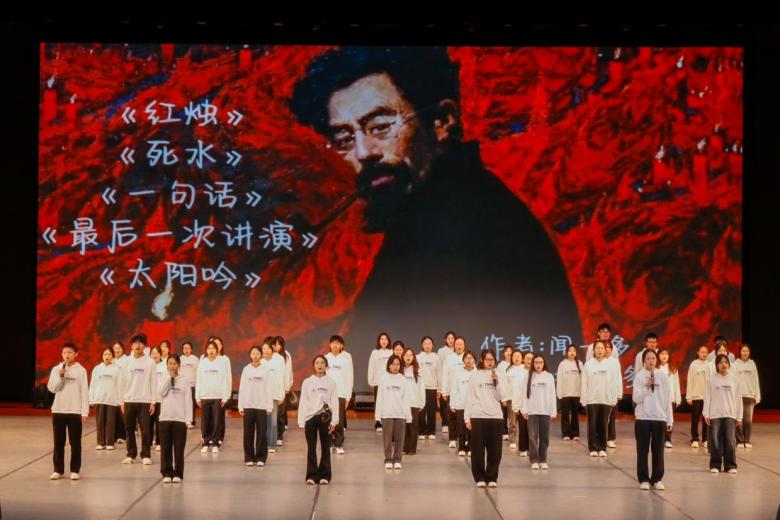 闻一多班的《闻一多诗歌作品朗诵》呈现了多首大家耳熟能详的经典作品,诗歌中充满了浓烈的爱国主义情感,生动体现了闻一多先生对祖国深切的热爱之情与对民族尊严的捍卫。